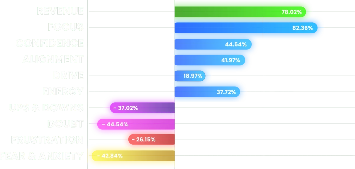 They averaged 78% income increase in 90 days - but more importantly, they reported a 42% decrease in fear and an 82% increase in focus - transforming from stressed-out grinders into unshakeable leaders.