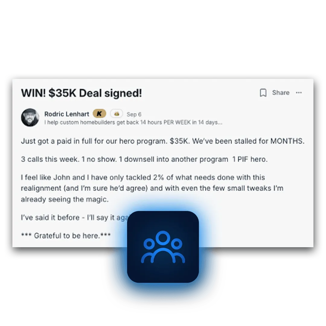 We host a business hot-seats call and a mindset call every week. This is where you'll bring any questions or context to talk through anything LIVE.